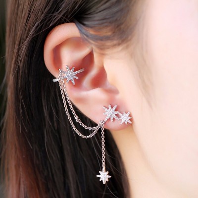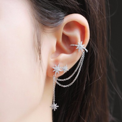 【周冬雨 宋茜同款】APM Monaco/APM Monaco单只六芒星流星链条流苏耳钉女耳夹 ins风气质时尚耳环耳坠 11547 送女友情侣闺蜜礼物银首饰品