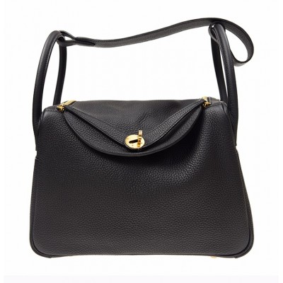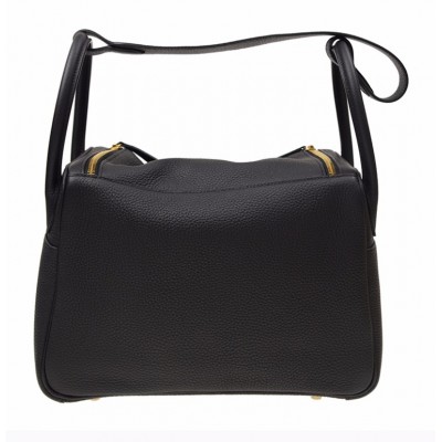 【包邮包税】Hermès 爱马仕 LINDY 30 女士黑色牛皮金扣单肩包