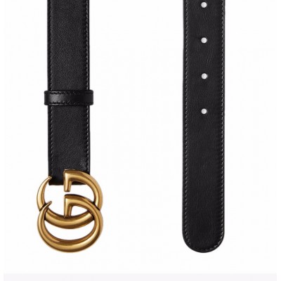 【七夕情人节好礼 男女同款】GUCCI/古驰 【20春夏新款 明星同款】男女同款黑色皮革金色双G搭扣商务休闲腰带皮带 414516-AP00T-1000
