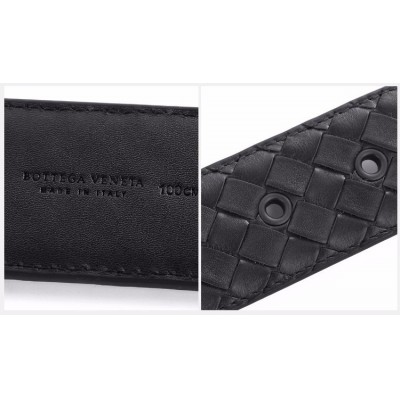【情人节礼物】Bottega Veneta/葆蝶家 【爆款热卖】BV 男士黑色牛皮编织针扣式商务休闲皮带裤带腰带 271932-V4650-1000