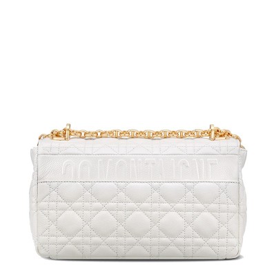 DIOR/迪奥 2021秋冬新款 CARO系列 女士中号象牙色柔软小牛皮藤格纹CD扭纹扣翻盖封口单肩斜挎包M9242UWHC_M35U