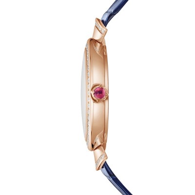 BVLGARI/宝格丽 DIVAS'DREAM系列镶钻款 18K金玫瑰金表壳青金石表盘蓝色鳄鱼皮表带 30毫米